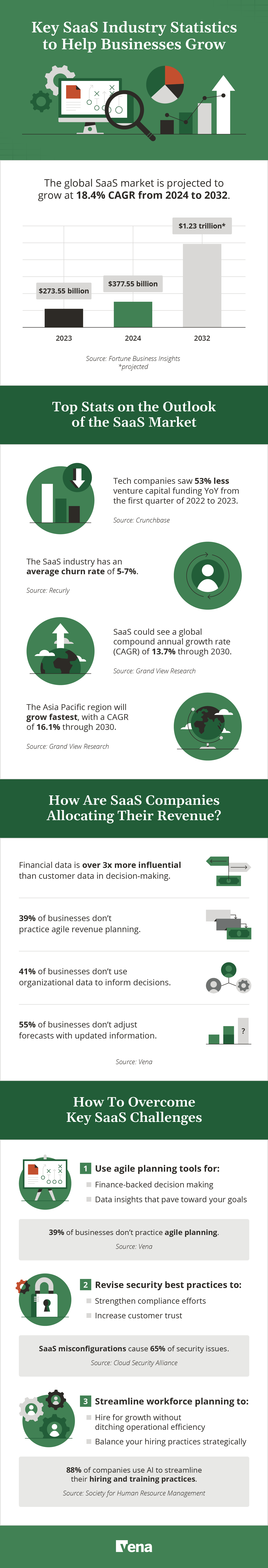 SaaS businesses face significant and often shifting challenges, like the unpredictable nature of venture capital funding. Company and user security, workforce management, and revenue planning are three primary pain points in the SaaS world.